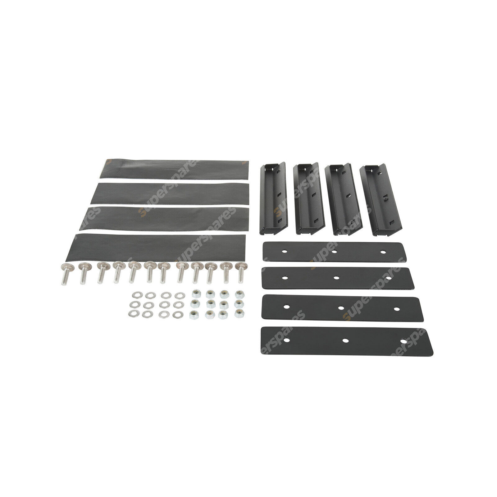 This kit includes hardware to fit 4 artificial gutters to the canopy to suit 2 sets of gutter mount leg kits and 2 crossbars